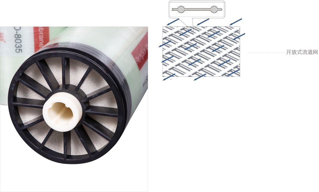 隨著膜技術(shù)工業(yè)的發(fā)展,對膜產(chǎn)品性能的要求出現(xiàn)了更多差異化的需求,例如:更低進(jìn)水水質(zhì)要求;更高壓力提高濃縮倍數(shù);更長清洗周期和使用壽命。因此,開放式流道卷式高壓膜應(yīng)運(yùn)而生。