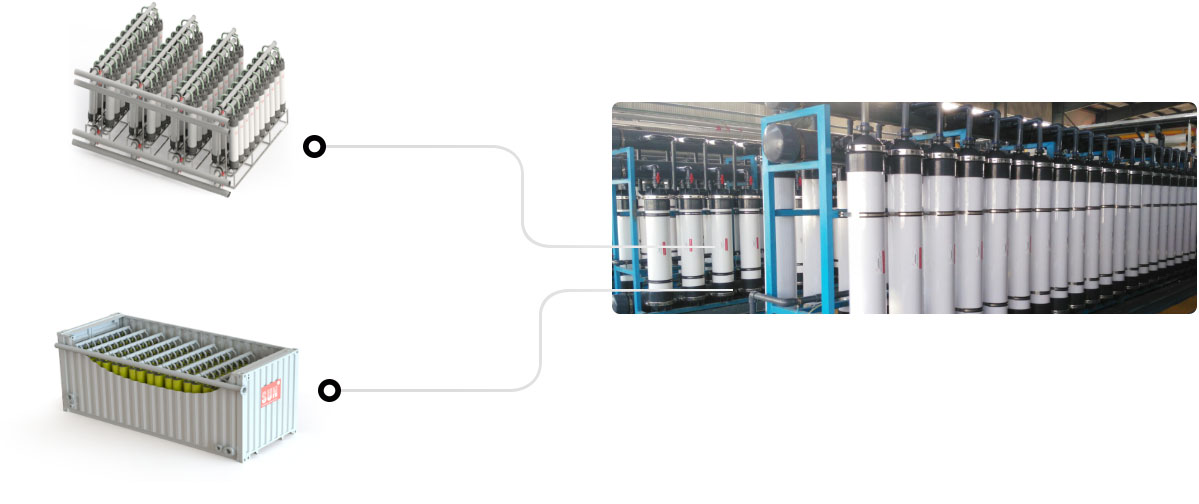 SMBR 是一種浸沒式,真正可反洗卷式膜,適用于工業(yè)廢水和工藝用水。SMBR 是在傳統(tǒng)卷式膜的基礎(chǔ)上增加曝氣擦洗,從透過液側(cè)提供壓力和流量進(jìn)行反洗的創(chuàng)新性產(chǎn)品。它的最大優(yōu)勢(shì)在于無需在供給側(cè)提供高耗能的壓力和流量,而僅在透過液側(cè)按相應(yīng)產(chǎn)能提供抽吸能量。同時(shí),它可與中空纖維膜按同樣的反洗頻次進(jìn)行反洗。