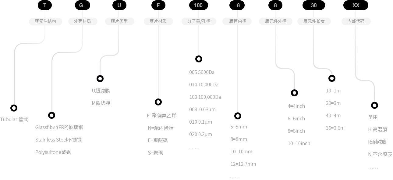 SUN管式膜產(chǎn)品范圍: