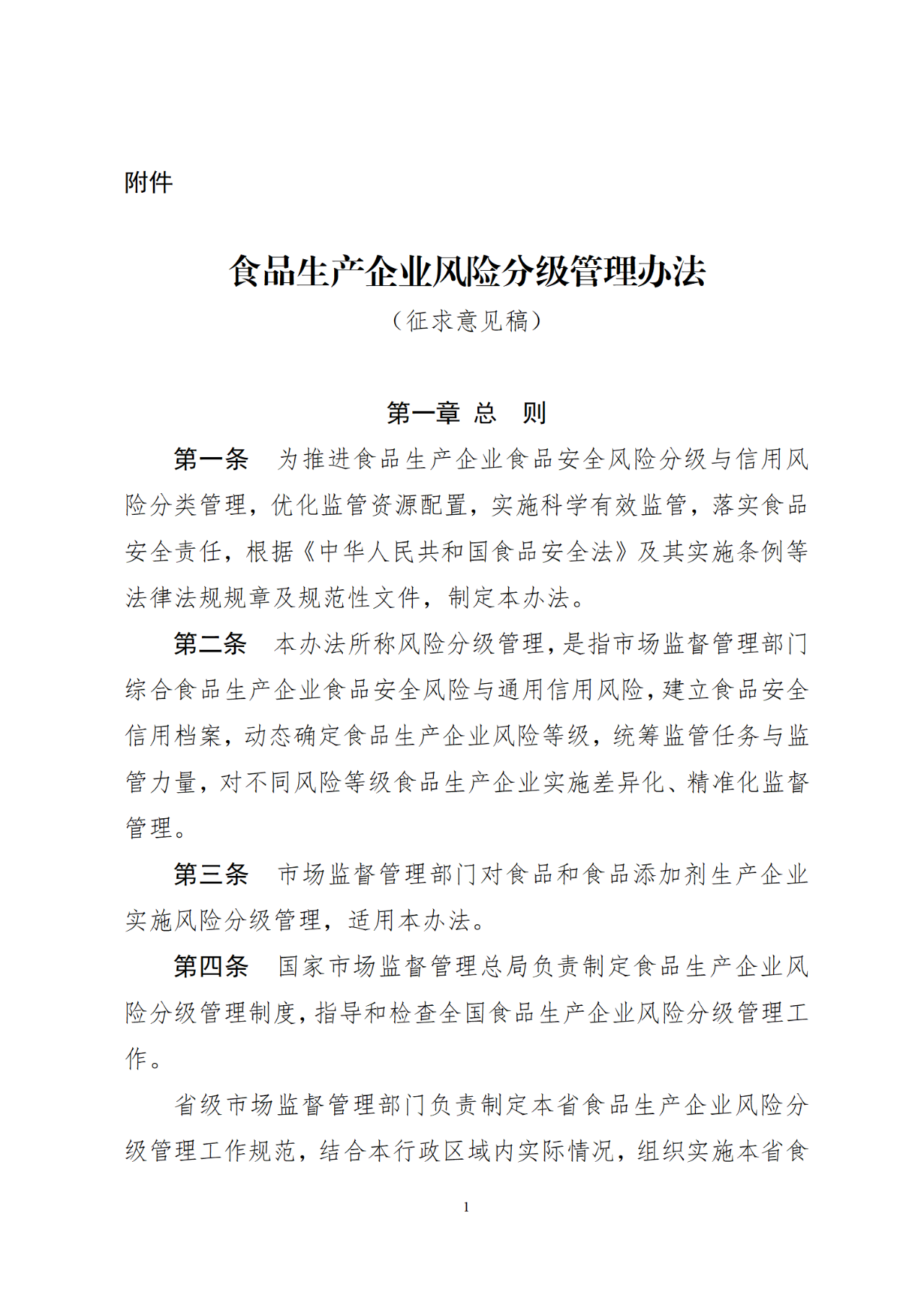 附件:食品生產(chǎn)企業(yè)風(fēng)險分級管理辦法(征求意見(jiàn)稿)